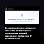 Вместо того, чтобы каждая нода заново исполняла все транзакции, сеть хочет перейти к модели, где валидатор проверяет криптографическое доказательство корректности (zkEVM/zkVM). Это должно снизить требования к железу, ускорить синхронизацию и упростить жизнь домашним валидаторам/соло-стейкерам. План описан как «конвейер доказательств» (ExecutionWitness → генерация proof → проверка proof) и может быть реализован через EIP-8025, который входит в дорожную карту Ethereum на 2026 год.